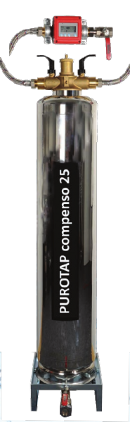 The PUROTAP® compenso 2 resin filling has a capacity of 4500 l at 1 °fH, or 2500 l at 1 °dH.